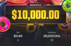 - Player wins $10,000 on $0.40 bet at Shuffle Casino.