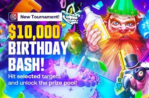 Shuffle.com is celebrating its 3rd anniversary with the Birthday Bash tournament, featuring popular slots and a $10,000 prize pool. To win a share of the prize, just hit the multiplier targets in four games, with a minimum bet of only $0.40 per spin.