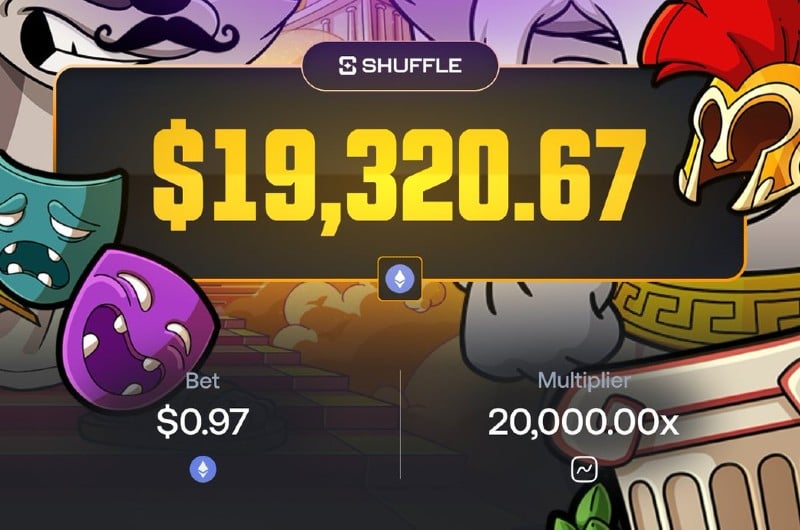 A lucky Shuffle Casino player won $19,320.67 from a $0.97 bet on Le Zeus, hitting the game's 20,000x maximum multiplier.